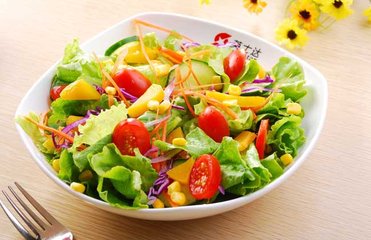 1 蔬菜沙拉 蔬菜能做沙拉的主要還是生菜、紫甘藍(lán)、圣女果、黃瓜、玉米、沙拉醬、橄欖油這幾種組合,開胃爽口兩不誤,蔬菜沙拉在食材選擇上要用心,夏天很容易挑選到不新鮮的食材,所以購買時需要挑選,蔬菜都比較容易處理通常洗凈切好即可,玉米剝粒后需要煮熟,沙拉醬可以自制也可以購買甜味蔬菜沙拉可以放甜沙拉醬,做成咸味的蔬菜沙拉可以只加橄欖油、鹽、魚露涼拌即可,夏天蔬菜做涼菜也是不錯的選擇。